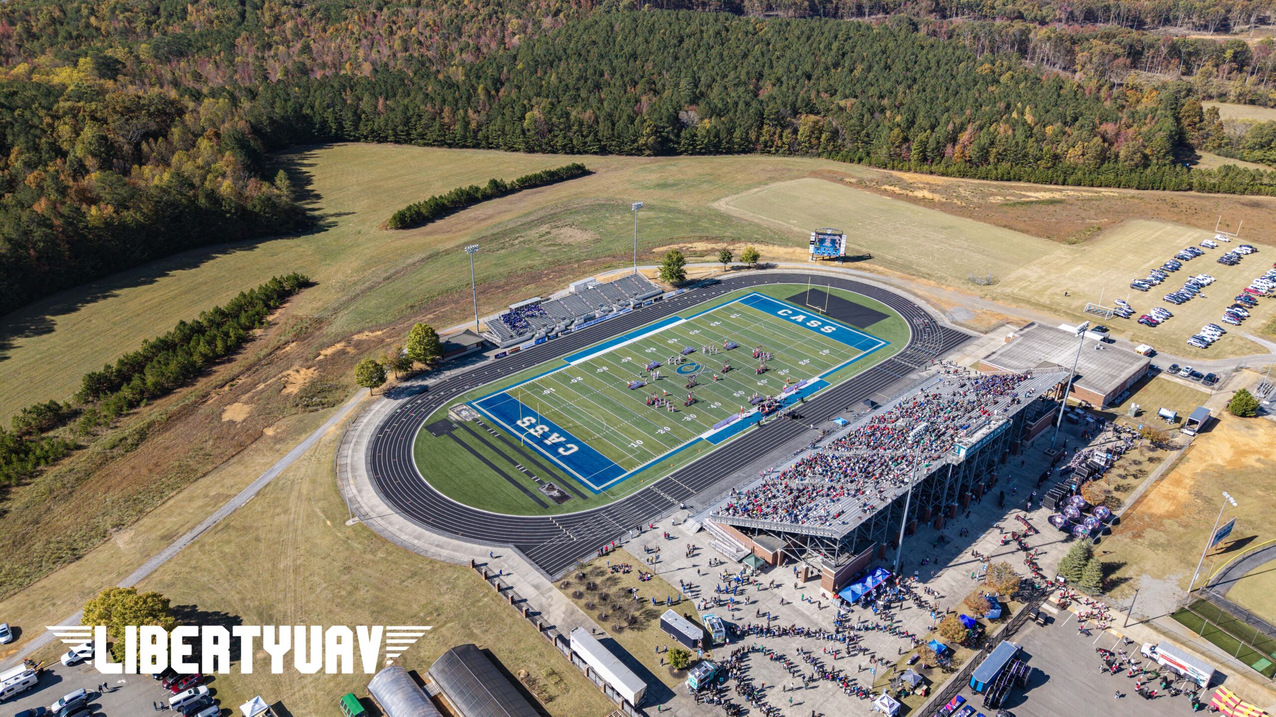 Liberty UAV provided media coverage for the Bands of America Southeast Regional held at Cass High School. This prestigious marching band competition brought together top programs from across the region to perform at a high level of excellence. From pre-performance preparation to on-field intensity, this project highlights professional event coverage capturing the scale, precision, and energy of a premier regional championship.
