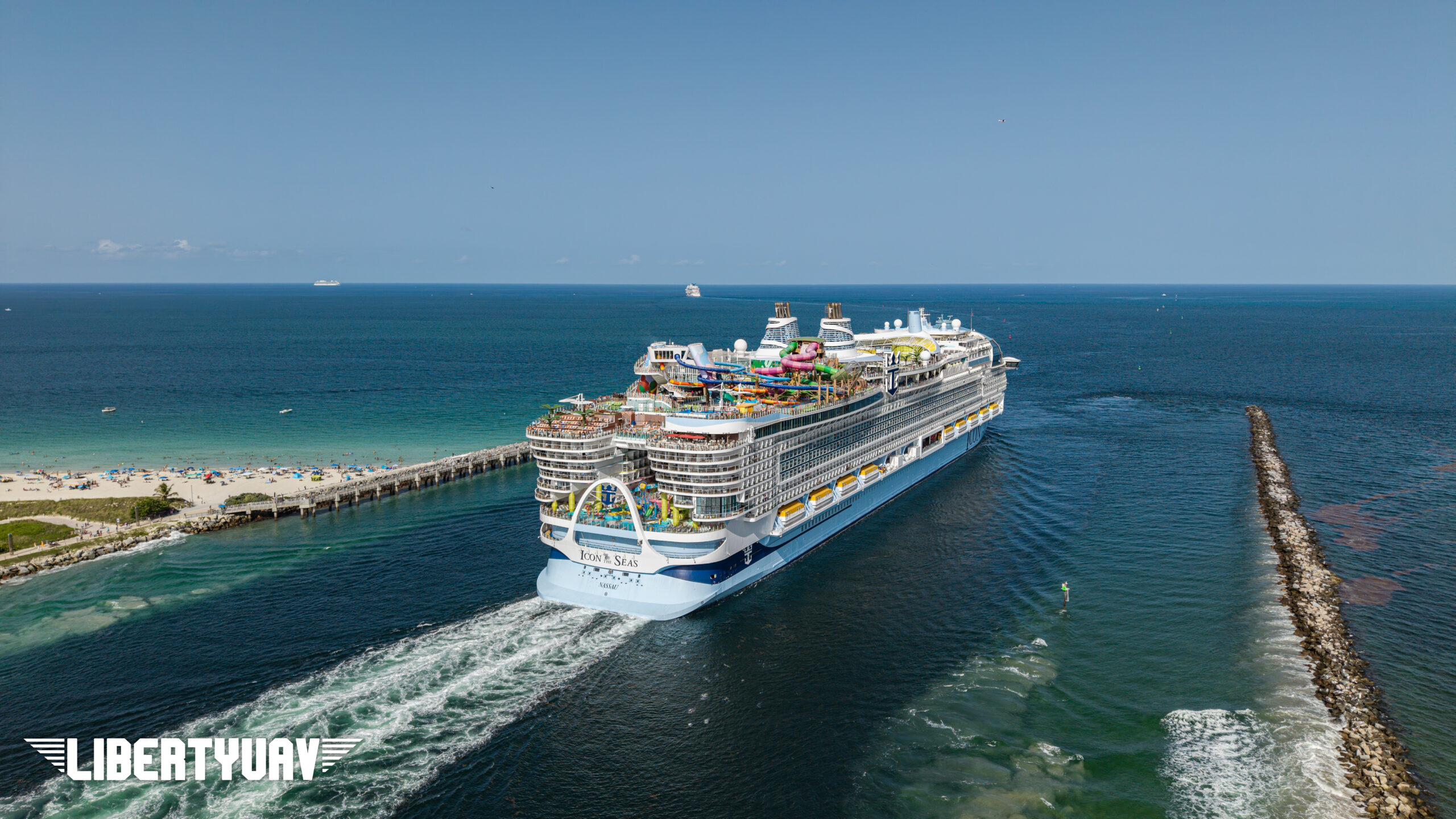 While on vacation, Liberty UAV captured stunning aerial views of the Port of Miami, featuring the Icon of the Seas and Carnival Horizon departing. These images demonstrate our expertise in providing commercial clients with precise aerial perspectives for project monitoring, port operations, and marketing.