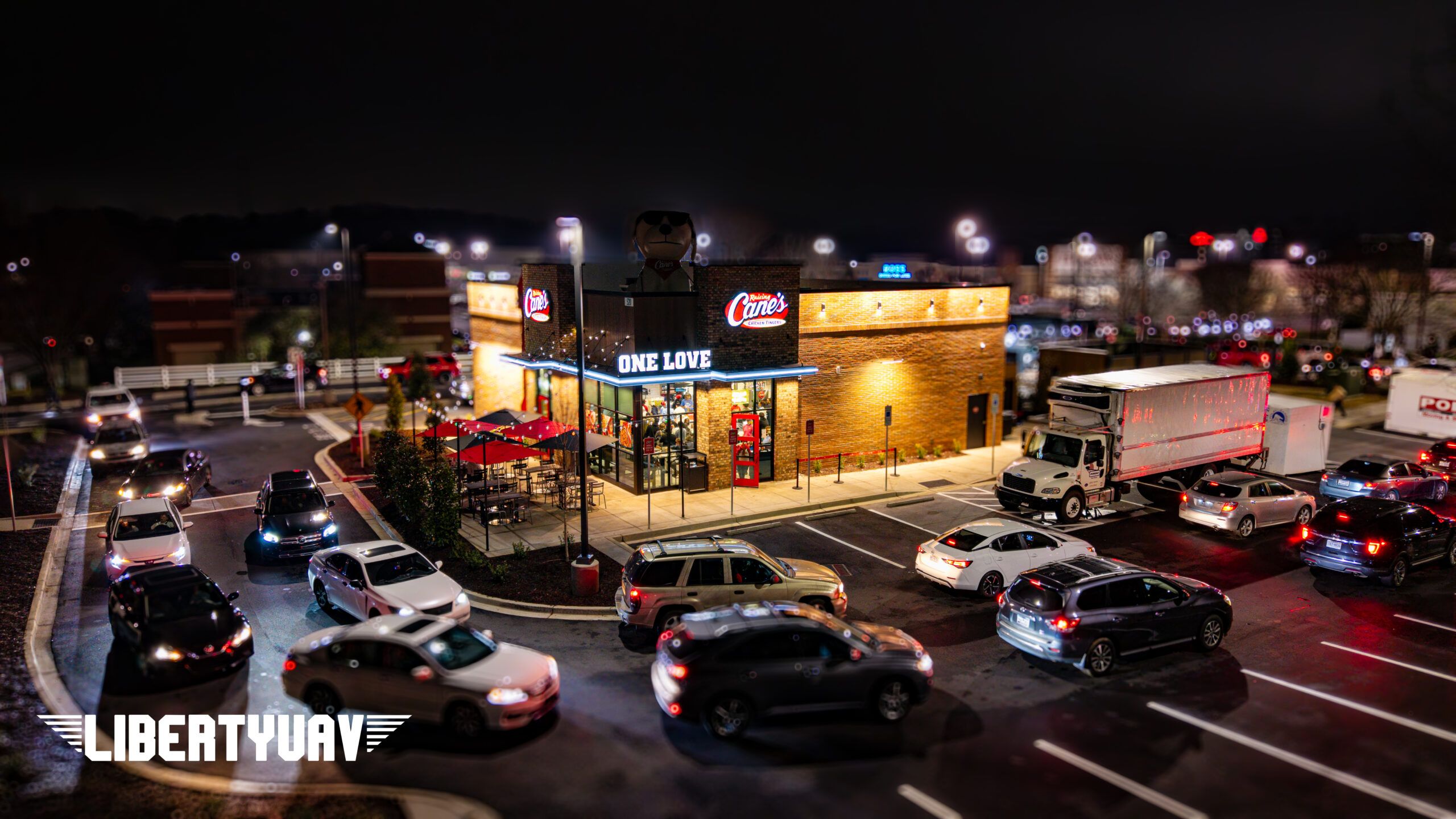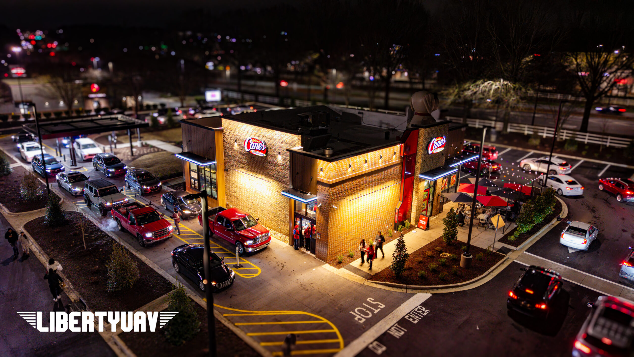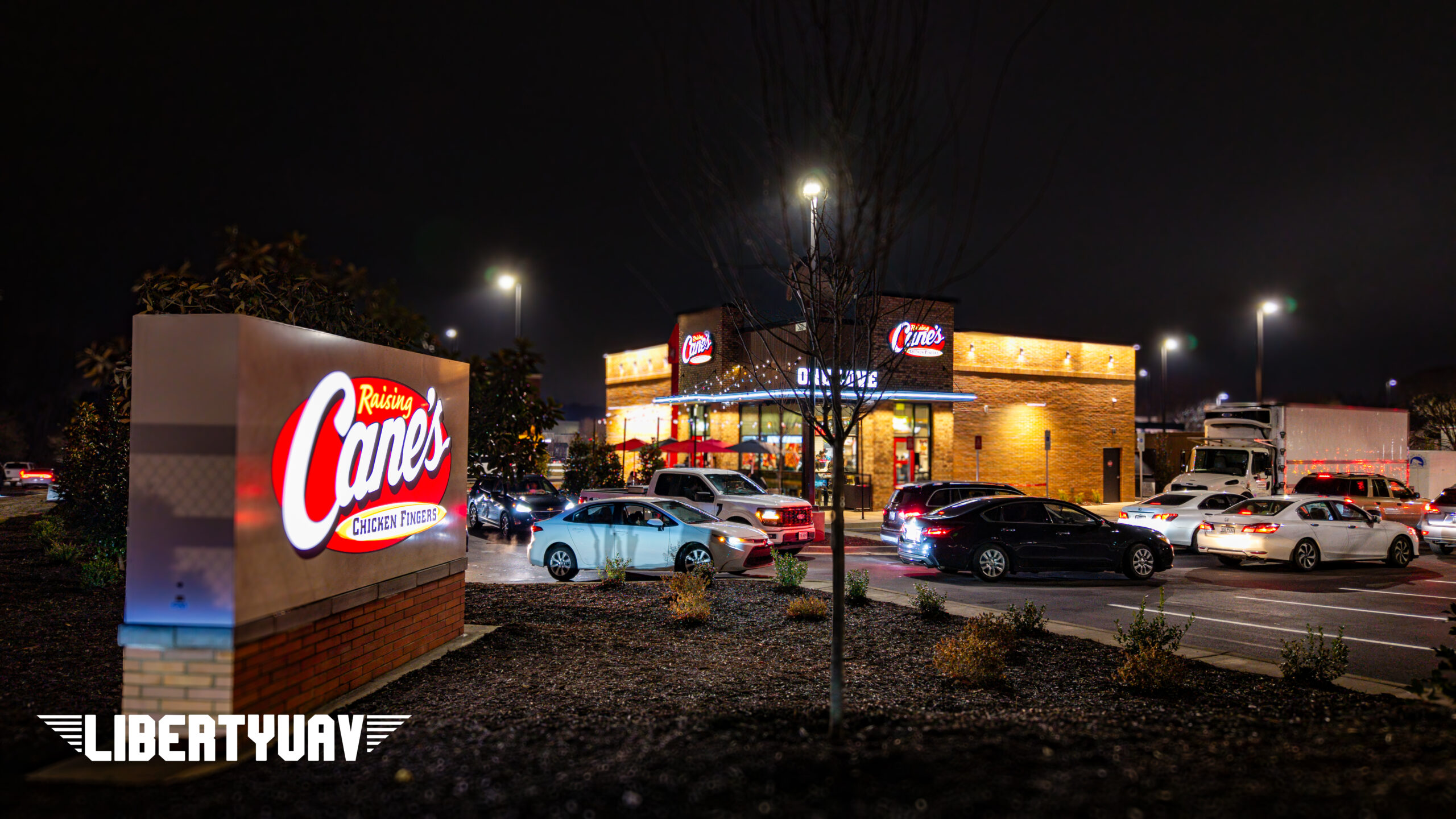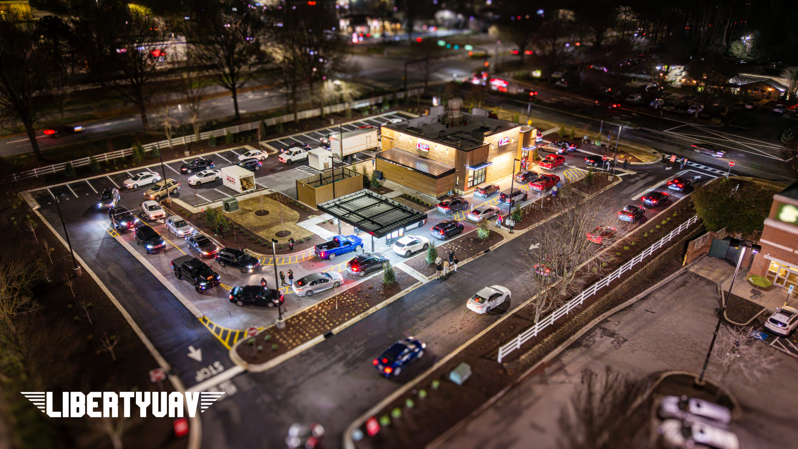 Liberty UAV documented the full construction process of Raising Cane’s in Rock Hill, SC. From early site work to the packed grand opening night on February 24, 2026. This project highlights the value of professional drone services for commercial development tracking, marketing, and stakeholder updates.